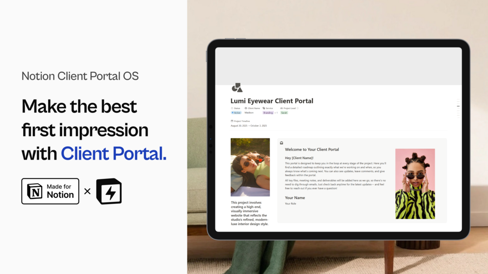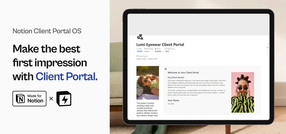 A beautifully organized, all-in-one Notion portal designed to help service providers deliver a seamless, professional experience to every client.