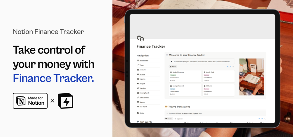 An all-in-one Notion finance tracker designed to help you take full ownership of your money — track income, expenses, savings, budgets, subscriptions, and net worth effortlessly.